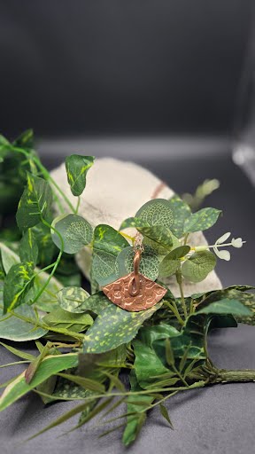 A beautifully crafted copper pendant shaped like a fan, blending vintage charm with modern style.