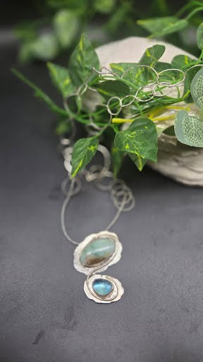 This handmade necklace showcases a polished aqua blue Chalcedony, adding a touch of calm and sophistication to any outfit.