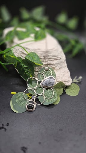 Pinolith Jasper & Black Star Sterling Silver Necklace