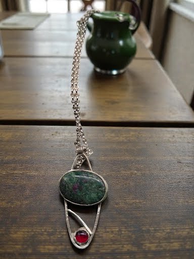 Delicate and elegant, this 24-inch sterling silver necklace features a stunning ruby fuchsite gemstone, adding a touch of natural beauty to any outfit.