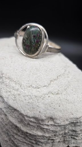 A striking gemstone blending ruby’s richness with fuchsite’s earthy greens, creating a colorful, eye-catching look.