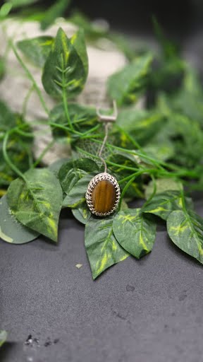 A polished Tiger Eye gemstone known for its bold stripes and powerful, grounding energy.
