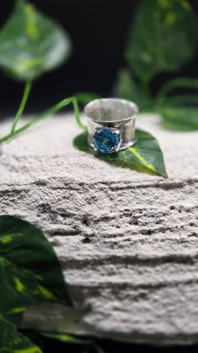 A wide-band alexandrite cubic zirconia ring in size 6, featuring stunning color-changing sparkle for a bold, elegant look.