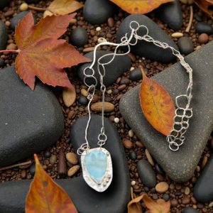 Larimar Stone Necklace with Handmade Sterling Silver Chain